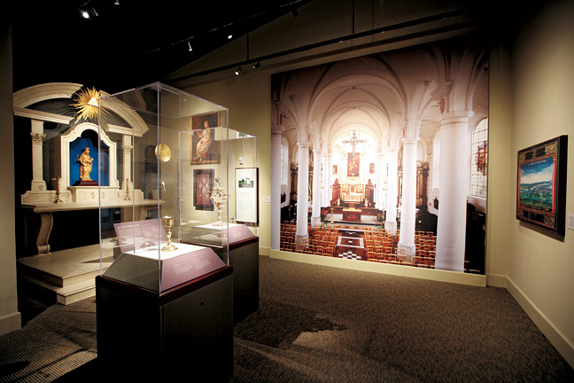 When Sacred Encounters first appeared as a Class A traveling exhibition touring the United States and Canada, its space requirements were so large it could not be shown anywhere near the Coeur d’Alenes. (What was then the Cheney Cowles Museum in Spokane staged a small preview, Peterson says.) Yet its unique and intimate examination of the mingling of two faiths and two cultures lent it such power that tribal members made the five-hour drive to see Sacred Encounters at the Museum of the Rockies in Bozeman, Montana, where it opened, and at Tacoma.