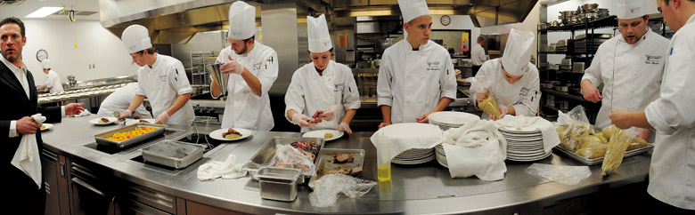 Callison works with 27 student employees for these fall season meals. Of them, maybe four or five are thinking of going into the culinary field. But all of them will benefit from taking part. Whether they go into hotel or restaurant management, or some other part of the hospitality industry, “an understanding of food and wine in this day and age is becoming essential,” says Callison.