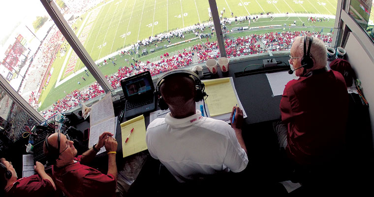 There he joins broadcast partners Bud Nameck, Shawn McWashington, a member of the 1998 Rose Bowl team, and Jessamyn McIntyre to make final preparations for the game ahead.