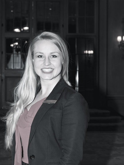 Schroader’s job as the hotel’s catering sales manager, or more simply, wedding coordinator, touches on many components of the field of hospitality, including the lodging of the family and guests, planning and coordinating the cocktails and meals, and running the event itself with its waiters, bartenders, and musicians. And she gets to do it in the heart of a city that she loves in a spectacular setting. The job is not what she imagined when she was working after classes at Pullman’s Holiday Inn Express and Fireside Grill to gain experience and pay for college. “It’s better,” she says.