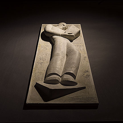 The plaster maquette was created by sculptor Dudley Pratt as a preliminary step in carving the larger, 25-ton limestone statue that has hung on the west wall of the library since 1949. The model had been at the Cathedral of St. John the Evangelist in Spokane almost since the late 1940s when it was given to WSU Board of Regents member Charles McAllister. He was dean to the cathedral at the time and hung it on the wall of the library in the cathedral deanery where he lived, says Anna Wheatley, interim development director for libraries. When the cathedral was renovated in 2007, the maquette was put into storage, where it was recently found by a church employee.
