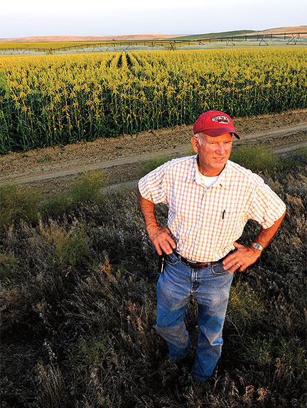 So why is it here? Irrigation is the key. Corn needs sufficient water during three critical stages: tasselling, silking, and earfill. Without it the ear doesn’t fill out. In the Columbia Basin “when you want the water, you turn it on. When you don’t, you turn it off,” says Guy Madison ’78, who works as a consultant at 100 Circle Farms.