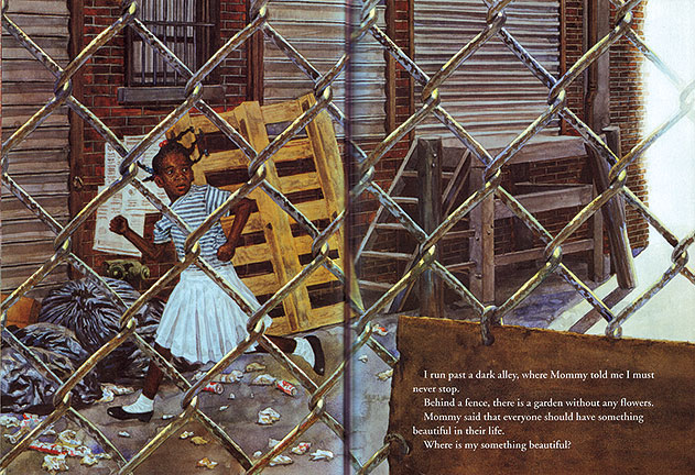 Jane Kelley pulls a picture book from a shelf in her office and, flipping through the pages, shows a story of a little girl living in a graffiti- and trash-covered apartment complex. The book, Something Beautiful, tells how the girl takes charge of her own environment and cleans up her home to make it more beautiful.