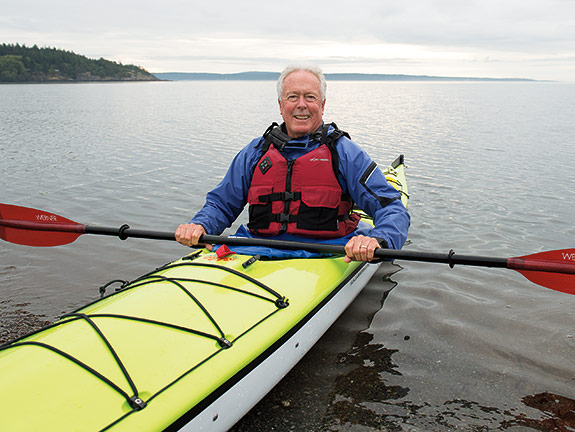 Tim Thomsen ’77 decided not to wait until retirement to follow his dream. Three decades ago he paddled his way into a kayak guide business in the San Juan Islands. One morning this summer, just a few days shy of his 65th birthday, he stood on the beach giving directions to a group about to explore some hidden coves. It’s all pretty awesome, he says of his sea-worthy life. “I have paddled every inch of every island in the San Juans.”