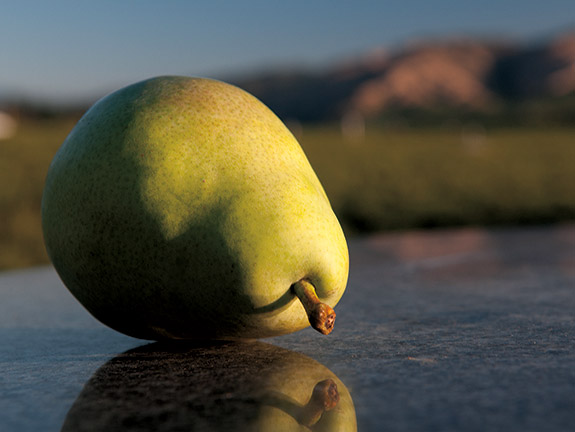 Because of the area’s climate, fire blight, the bacterial scourge of pears, is not such a dramatic problem as elsewhere. Which means fewer chemicals to control it. Mildew, which occurs in more humid growing areas, is almost unheard of in the area, says Schmitten.
