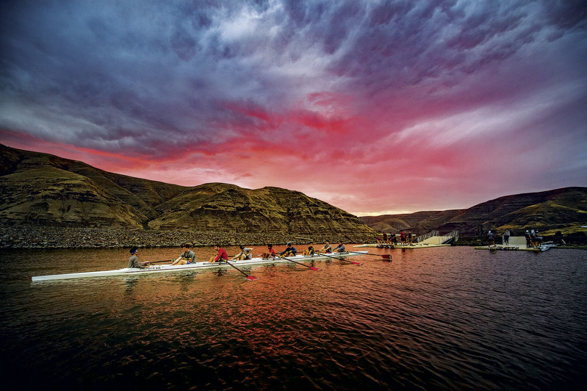 It takes about $300,000 per year to run Cougar Crew, including coaching, equipment, and travel. The endowment is about $375,000 and growing, compared to about $60,000 in 2004. This year’s gala alone raised about $87,000. One of Struckmeyer’s watercolors—he paints Snake River and rowing scenes, and they’re an audience favorite every year—went for more than $1,200.