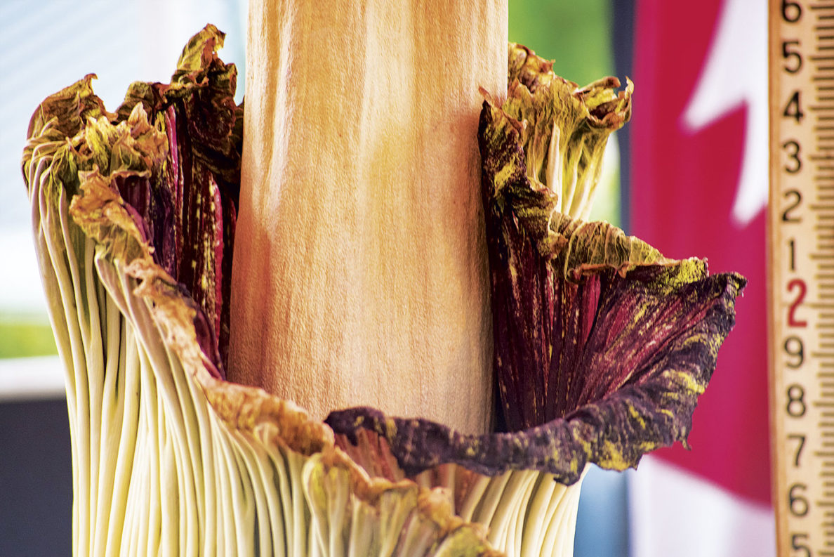 After 17 years of cultivation, at 8:00 p.m. on July 15, under an almost-full waxing gibbous moon, Titan VanCoug, as the plant is affectionately known, bloomed. The next day, some 12,000 people flocked to campus to get a look—and a whiff. The bloom of a corpse flower lasts just 24 to 48 hours and is infamous for its odor, comparable to that of a decomposing animal.