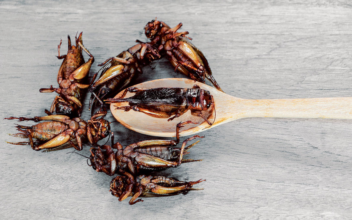 This shift is encouraging, Gordon says, especially when you consider a steak. “It takes almost 2,000 pounds of water and about 16 pounds of grain to make 1 pound of steak. It takes about a pound and a half of food to get about a pound of grasshoppers or crickets. That’s a much better deal.