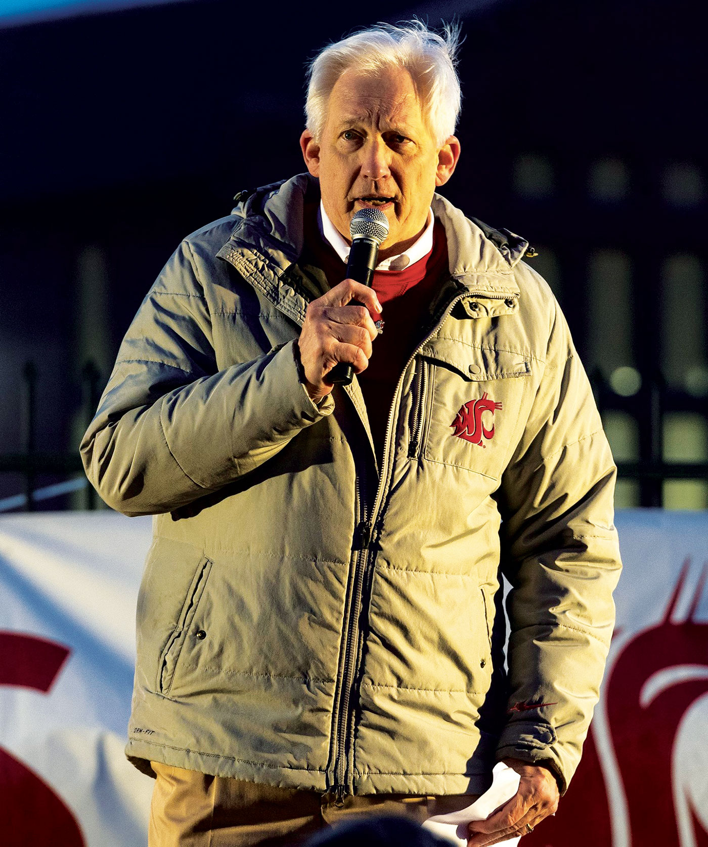 After four decades, the longtime mayor of Pullman and retired Washington State University broadcast professor continues to serve as the public address announcer for Cougar football and men’s basketball. He wrapped up 40 years as “The Voice of the Cougs” at the end of the 2020 basketball season. Fall marks the start of his forty-first year announcing WSU football.