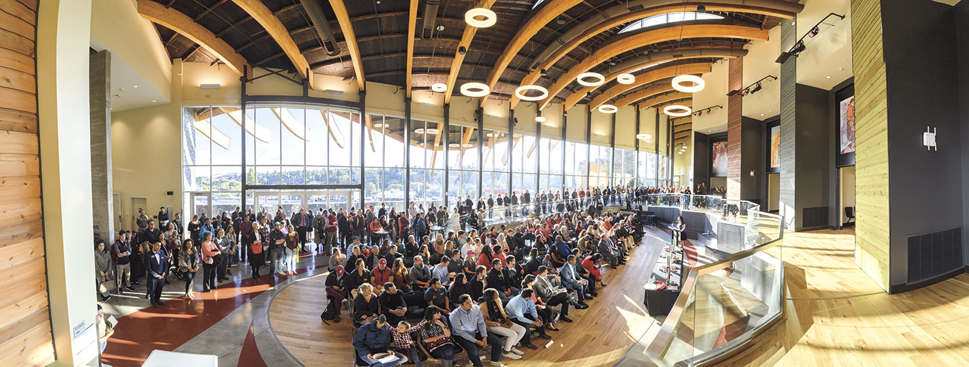 The Meditation Pavilion at Washington State University’s award-winning Elson S. Floyd Cultural Center resembles a sort of rocky outcropping in relation to the main building’s undulating form, inspired in part by the earth shelters and mat houses of the Palouse region’s Nez Perce Tribe. Inside, the sparse, dimly lighted, chapel-like space contains a Sacred Earth Ring, made of soil from Nez Perce land—a reminder of their historical connection to this place.