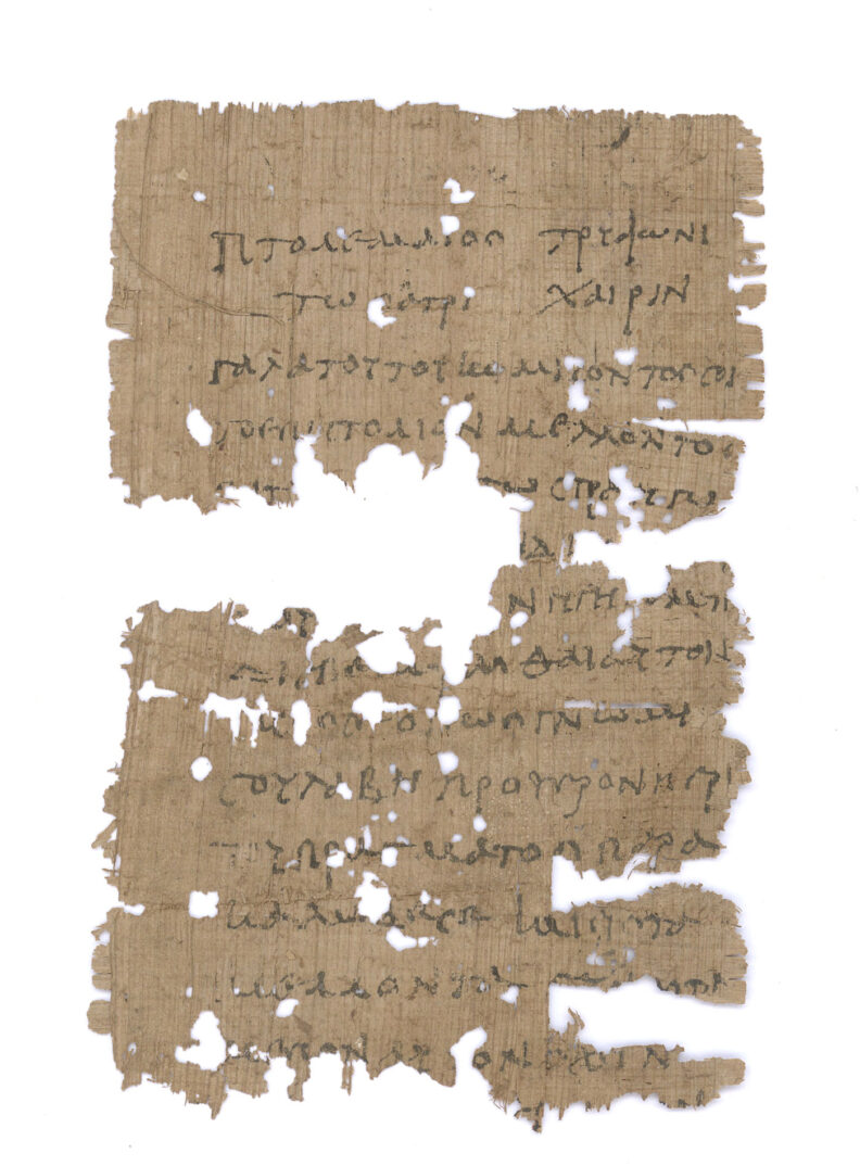 Two are from a certain Ptolemaios. One is among the collection’s largest fragments and contains more lines of text than most of the other pieces.
