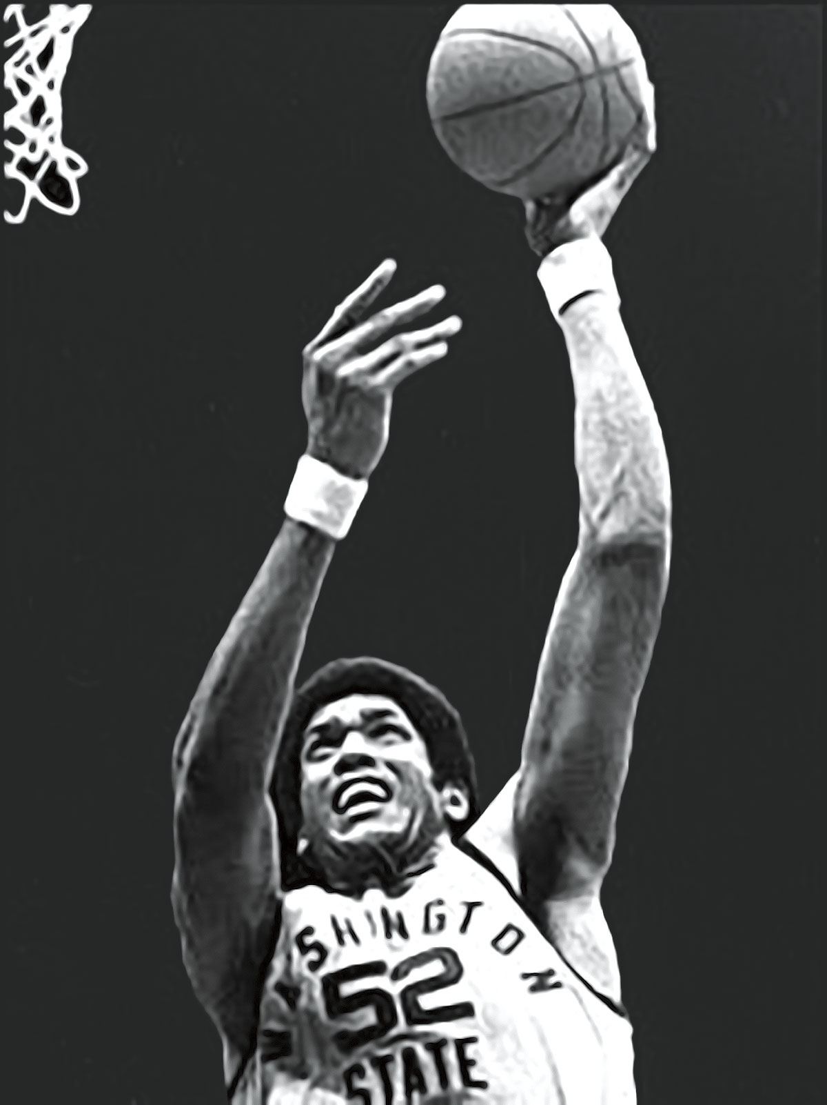 James Donaldson takes the basketball up for a dunk while playing for Washington State University in the 1970sJames Donaldson playing basketball for Washington State University