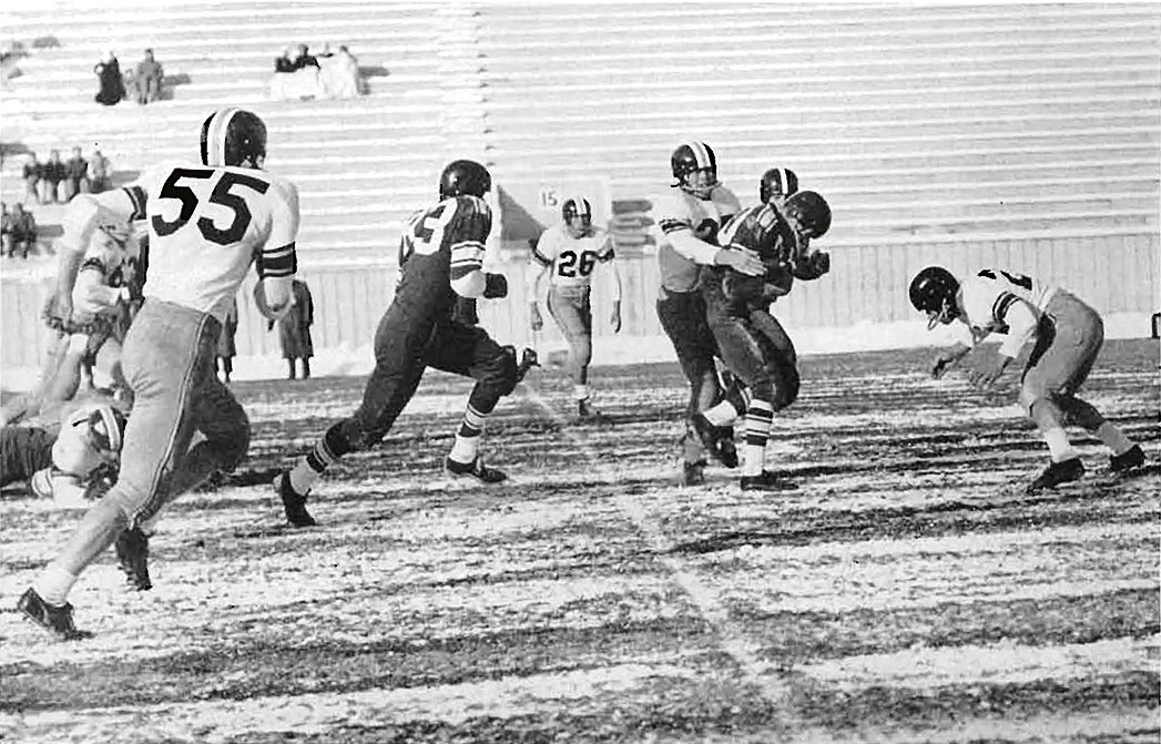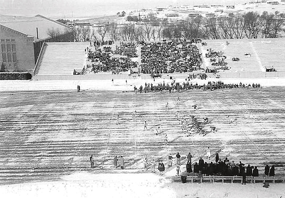 The subzero temperatures and snow at an infamous football game in November 1955 didn’t make anyone happy. The Cougs played San Jose State to a 13–13 tie, but only after plows removed snow from the field. “The band left prior to halftime as the lips of the horn players were freezing to their mouthpieces,” says Mack Parkhill ’56, who was the game’s announcer. Many of the San Jose State players had never seen snow, and “their coach bought every pair of cotton gloves in Pullman,” Parkhill recalls. “The players on the field were trying to avoid frostbite on each down. They absolutely earned their scholarships that day.”