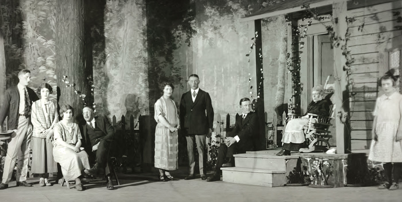 The cast of WSC theater production Miss Lulu Bett, April 1924. Ida Lou Anderson played Grandma Bett (seated on porch). (Courtesy WSU Manuscripts, Archives, and Special Collections)