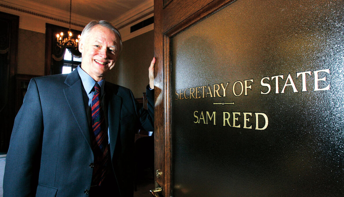 A day or so after Sam Reed was sworn in as secretary of state the first time, a group of enthusiastic Washington State University students showed up at his new office to lobby on behalf of his alma mater. “No one could walk into my office and not know about my WSU connection,” Reed says.