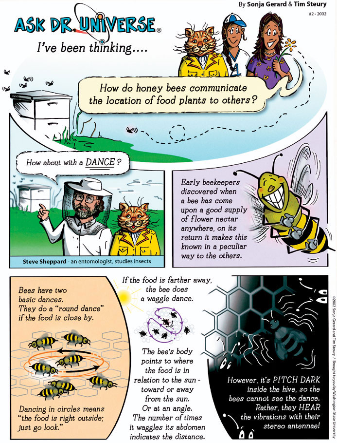 How do honey bees communicate the location of food plants to others?