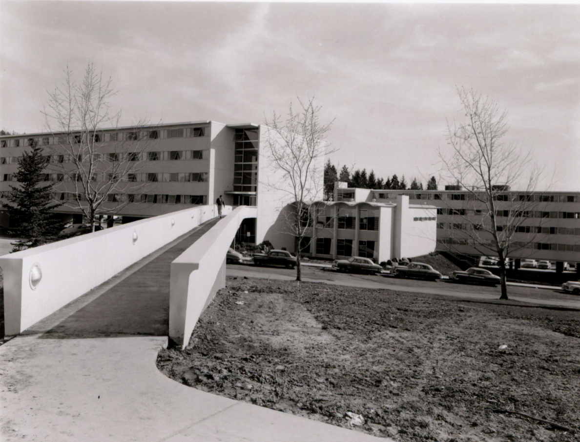 The dormitories housed 207 students each. Designed by architects Victor Jones and Lloyd Lovegren, each building was about 47,000 sq. feet.
