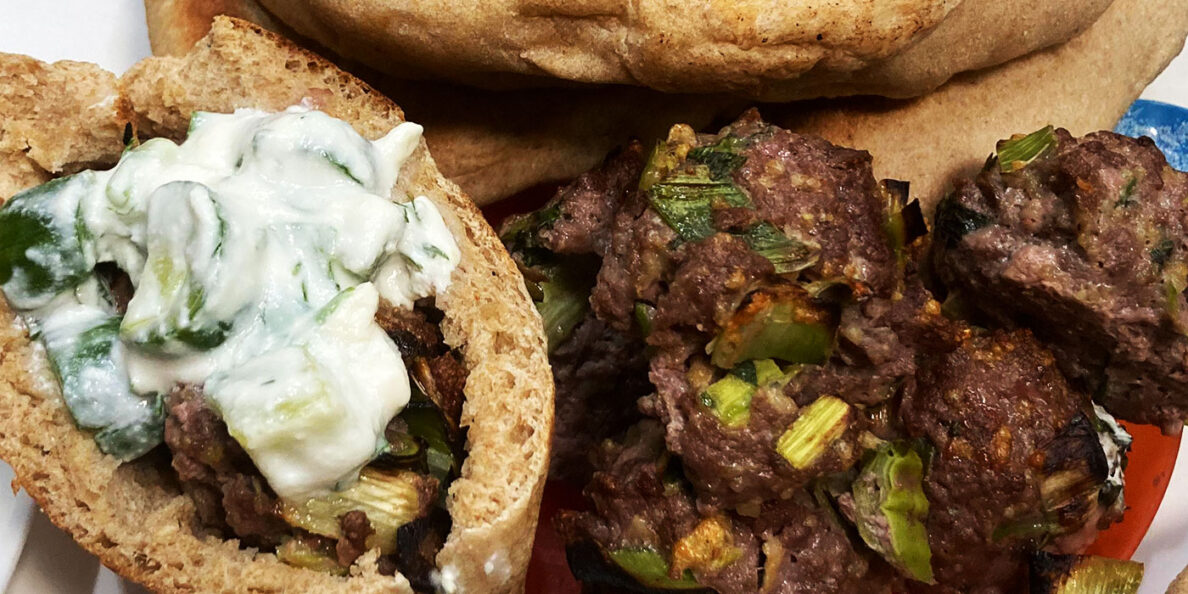 Combine the ingredients for the feta tzatziki. Serve alongside the meatballs for dipping.