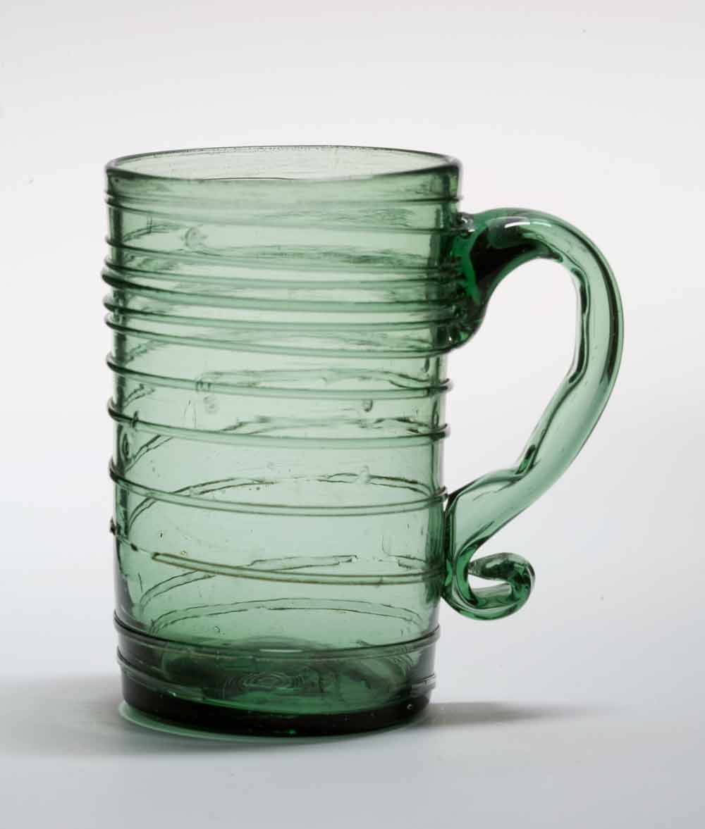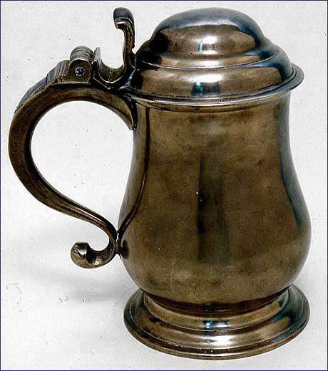 Apple trees were among the first food-bearing plants brought here to help make life more bearable for those who considered themselves English no matter on which side of the Atlantic they chose to live. In an age when water was suspect—as well it should have been for only shallow wells were in use—any sweet juice that could be turned into fermented liquor was considered as necessary as it was popular. And cider—drunk sweet, allowed to harden and often turned into brandy—was the most popular colonial juice of all. Drinking vessels from which to quaff the beverage were as diverse as the homes in which cider was made and served. The names by which those drinking vessels, all collected as valuable antiques now, originally were known, are equally diverse. Here we concentrate on what was then known, as it still is today, as the mug which was any large, straight-sided cup with a handle. They could be found made of wood, glass, silver, tin, pewter, or of earthenware or stoneware. (Excerpted from The New York Times, Oct. 18, 1981)
