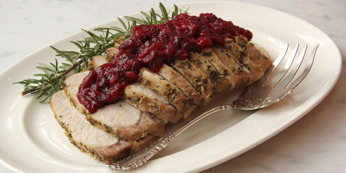 Fennel Rosemary Orange Roasted Pork Loin with Cranberry Sauce