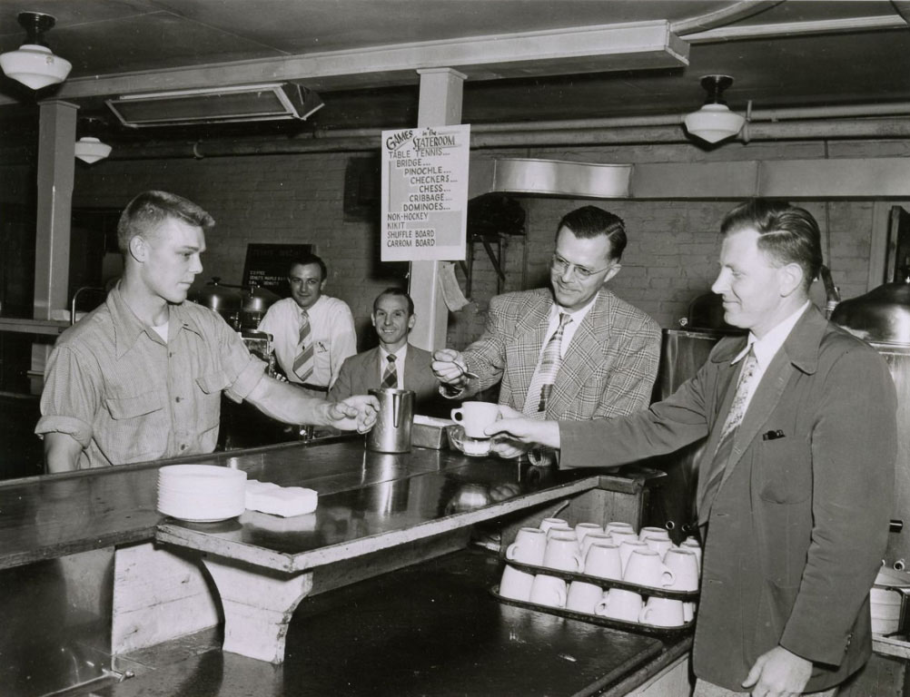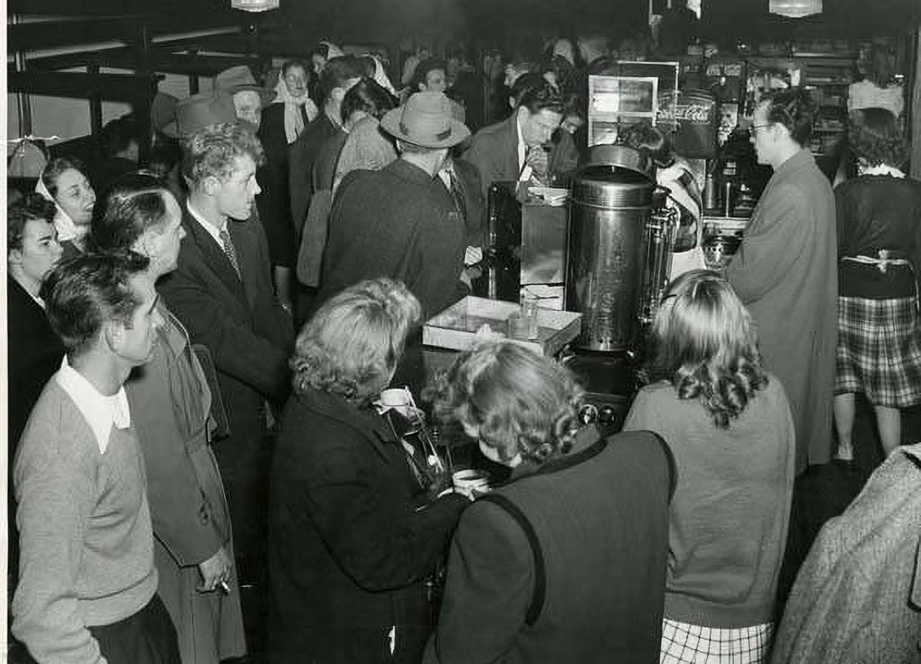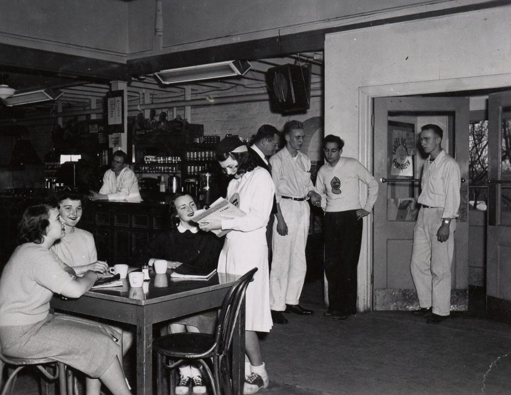 In addition to the CUB, the Student Book Corporation (the Bookie) had a popular soda fountain and café that drew in plenty of students and others on campus since the 1920s. The Bookie, the CUB, and the TUB all offered free coffee on the last Thursday before Christmas break, with faculty pouring for the students.