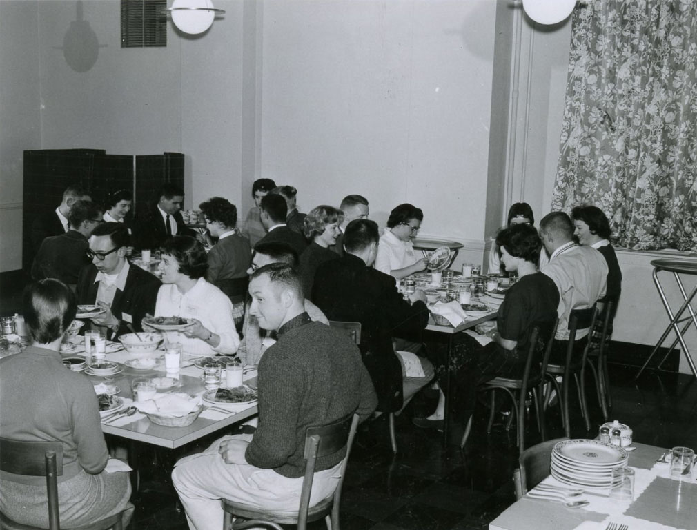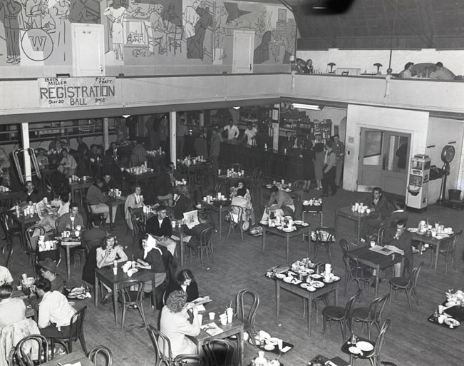 From the earliest days of Washington State, many residence halls and Greek houses had shared meals and more formal dining. Students, faculty, and staff still wanted to gather on campus outside of regular meal times and that led to the Temporary Union Building, the TUB.