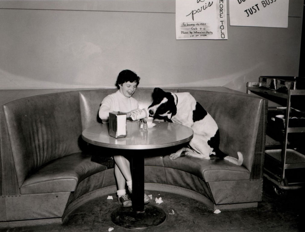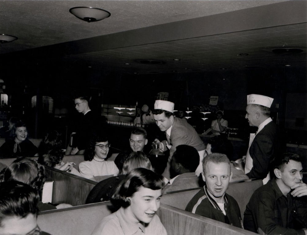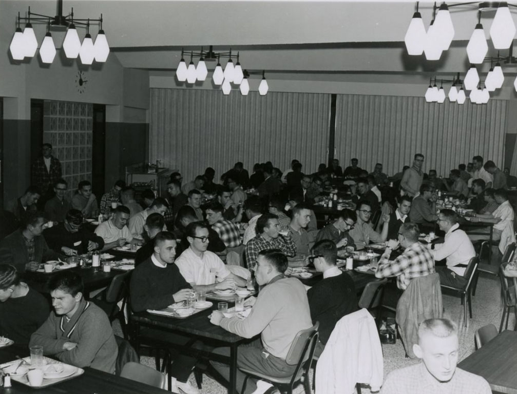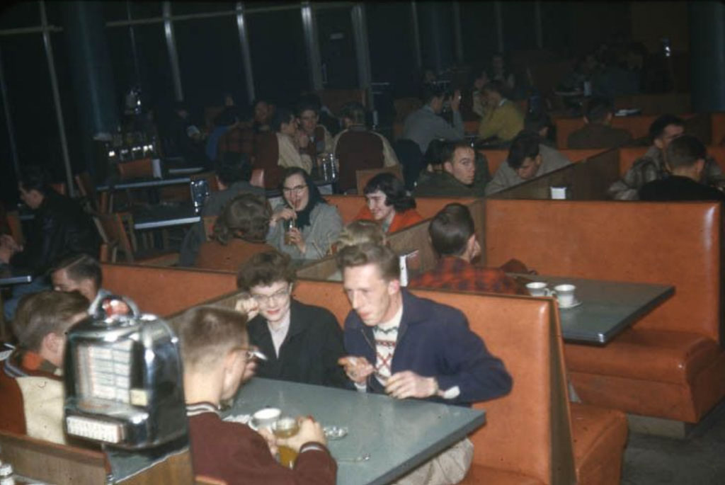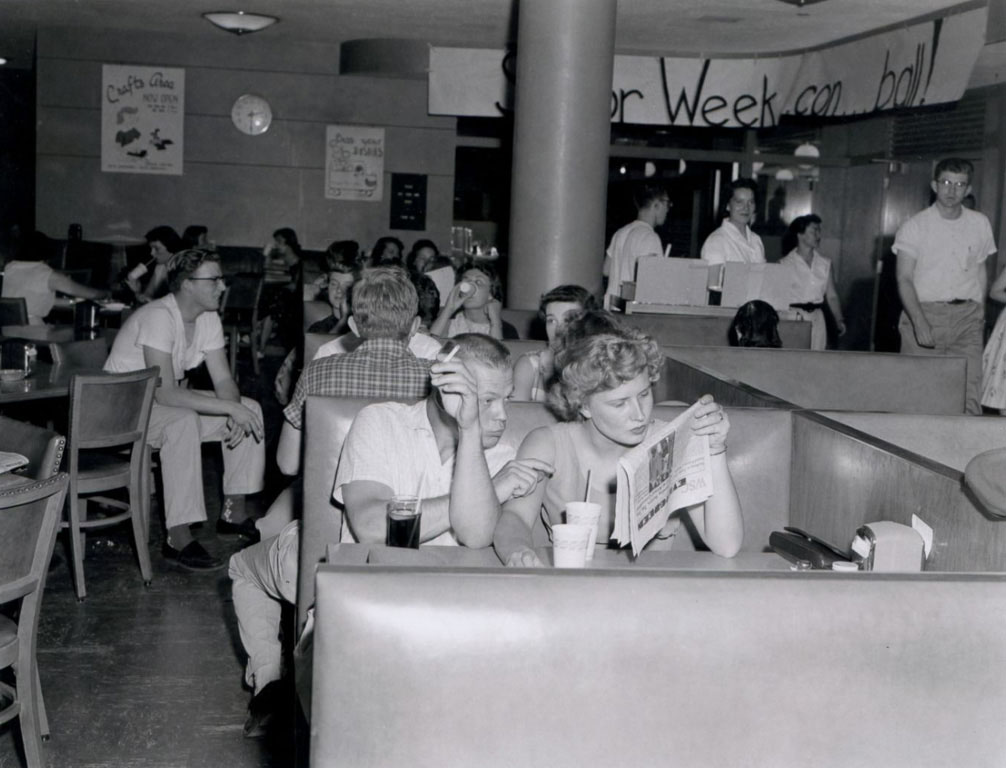 The converted gymnasium was large enough for dances and dinners, and it had a smaller hangout space in its basement called “The Drain.” But it just couldn’t accommodate all of the GIs and students after World War II. In 1952, the TUB was replaced by the Compton Union Building, which became a new place grab a quick meal.