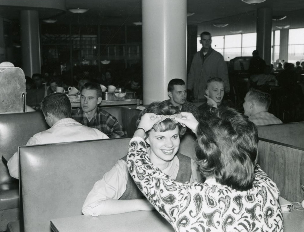 The CUB “fountain” and later other fast-food places, along with plenty of tables, booths, and other seating areas, provided a new hangout for students. It was remodeled in 2008 with new fast-food options.