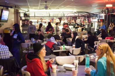 The CUB “fountain” and later other fast-food places, along with plenty of tables, booths, and other seating areas, provided a new hangout for students. It was remodeled in 2008 with new fast-food options.