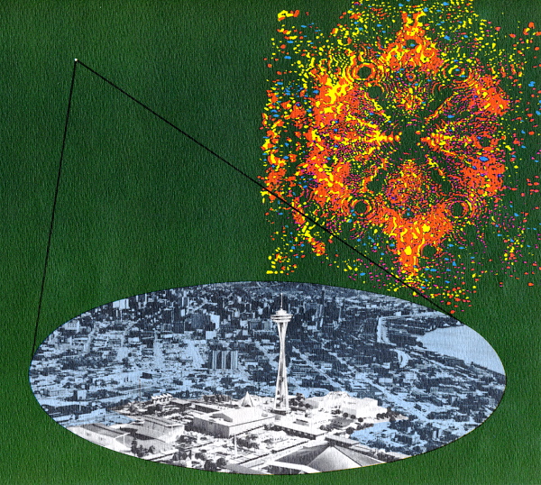 A gallery of souvenir lithographs commemorating the United States Science Exhibit at the Seattle World’s Fair, 1962