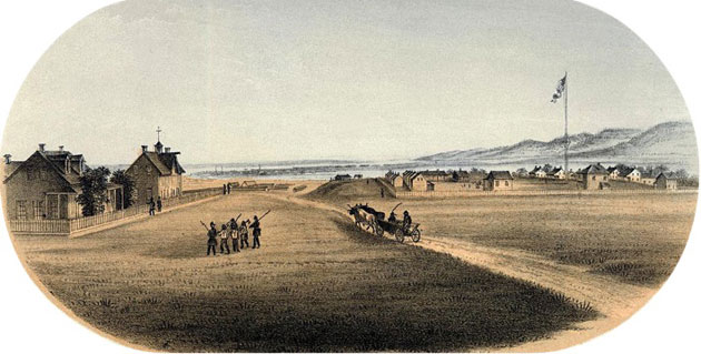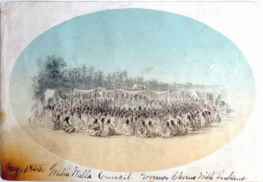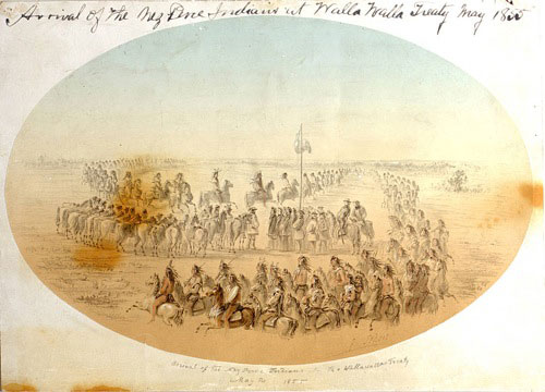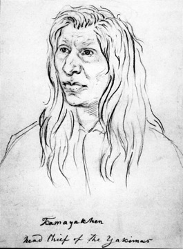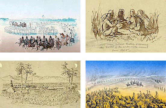 Gustavus Sohon was born in Tilsit, Germany on December 10, 1825. After emigrating to America, he enlisted as a private in the United States Army at the age of 26. He was ordered West for service on the Pacific Coast. A gifted linguist (he spoke English, French, and German), Sohon quickly learned the Salishan languages of the Flathead and Pend d’Oreille Indians. He also made drawings of the country and important landmarks while working on expeditions. At the request of Washington Governor Stevens, Sohon was transferred to his command. Stevens had been very impressed with Sohon’s work. On later expeditions Sohon worked as map maker and barometrical observer as well as sketcher and interpreter.
