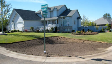 Spokane Pro Care killed the grass with Roundup, and A.M. Landshaper stripped the sod.