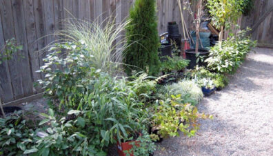 Then small plants and ground covers were planted through the rock mulch (and Karen Swanson helped).