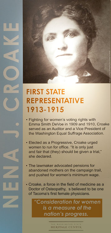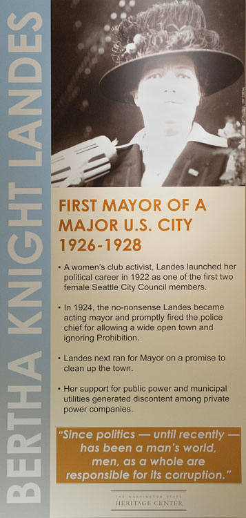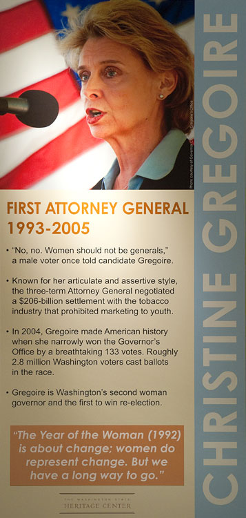 The Washington Secretary of State’s office and the Washington State Heritage Center presented an exhibit on Washington state’s first women in state government. Here are the posters from that “Moving Forward, Looking Back” exhibit in the state capitol building during Fall 2010.