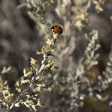 The sage and other plants of the shrub steppe habitat support a variety of creatures, including lady bugs that feed on aphids.