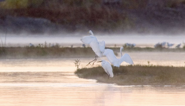 Egrets settle on a small island in the Crab Creek arm of Potholes Reservoir.