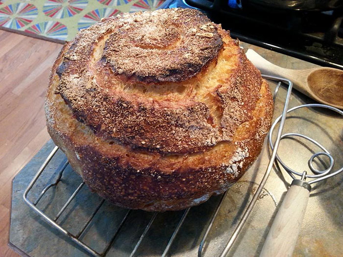 Robertson and other artisan bakers also recommend a variety of tools to maximize the odds of success. You can get an infrared thermometer, a special mixing tub, a kitchen scale, and special baskets lined with flax linen. You can even go all out with a home grain mill and wood fired oven.