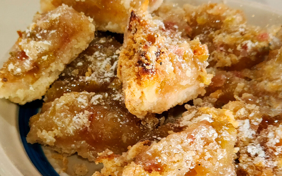 Cool: In pan on a rack. Decorate the bars with a little powdered sugar or brush over warm some jam for a glossier finish. Cut with a serrated knife when the bars are cold.