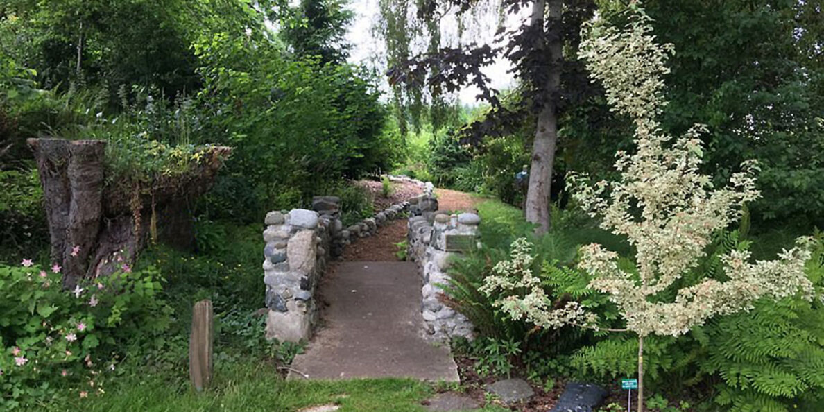 In all, the Greenbank Educational Gardens, located south of the farm’s historical big red barn, are made up of eight separate garden areas, plus a greenhouse, worm bins, and the Native Northwest Prairie, just west of the Native Plant Garden. A driftwood arch welcomes guests. Or, they can get to the Native Plant Garden via a stone bridge.